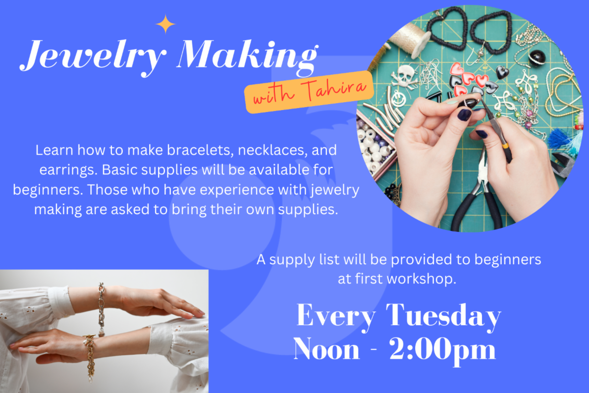 You can create your own personal expression on Tuesday afternoons with Tahira. Come and learn the fine art of jewelry making. You will find peace and tranquility while you create beautiful bracelets, necklaces or earrings. Tahira has been making jewelry for over 15 years and most of what she makes is donated to local women's shelters. She says that she loves to be able to create wearable art from different types of media. In addition to making jewelry in the class, many friendships have been created as well. The class jewelers will sometimes go out to lunch together of just get together outside of Joslyn to socialize. If you like to be creative and learn something new, come and join Tahira and others to create, share ideas, help each other, be social and have fun.